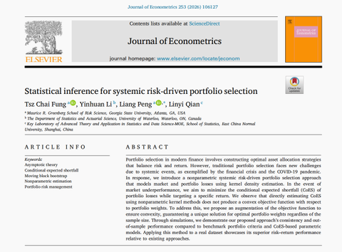 近日,计量经济学领域顶级期刊Journal of Econometrics刊发了华东师范大学统计学院钱林义教授与国际团队的合作研究成果。该成果针对金融危机、新冠肺炎疫情等 “黑天鹅” 事件引发的系统性风险,提出了全新的投资组合优化方法,以在潜在极端系统性冲击下实现稳健的资产配置,为系统性风险驱动的投资研究提供了新的理论思路和方法支持。